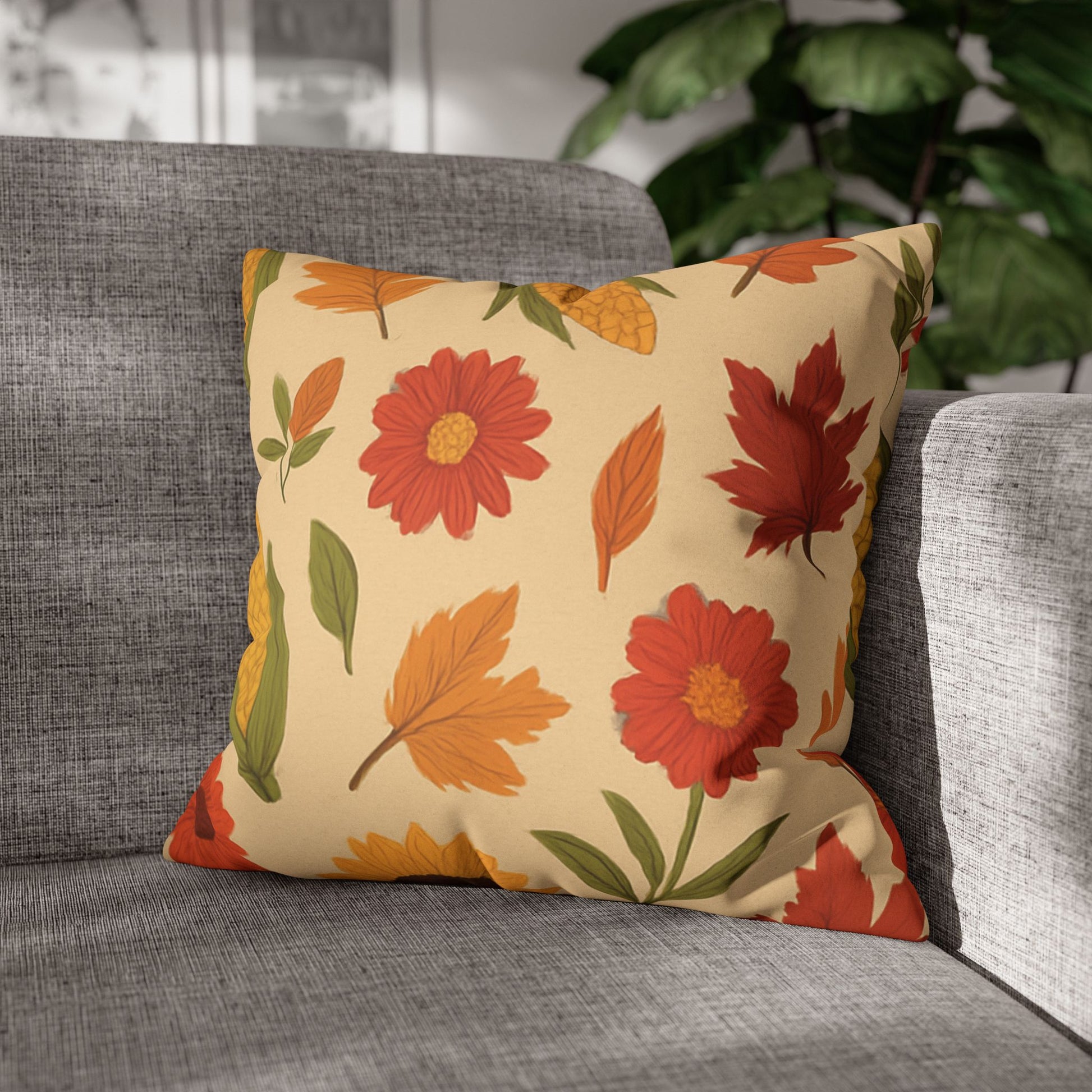 Autumn Floral Pillowcase, Cozy Home Decor, Fall Accent Cushion Case, Seasonal Throw Pillow, Thanksgiving Gift Idea